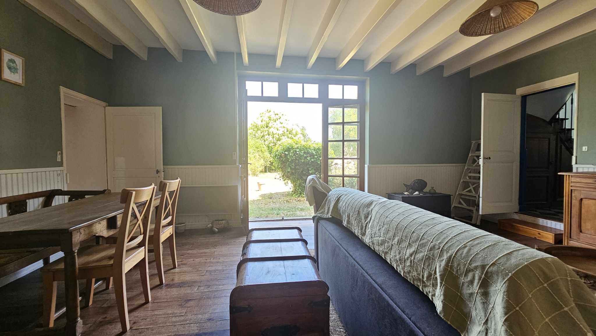 L'Agence CHARTREUX IMMOBILIER vous présente à la vente, à 15 minutes de ROYAN et des PLAGES, édifié sur un terrain de plus d'environ 3 200m2 paysager et agrémenté d'arbres fruitiers, un ensemble immobilier de caractère de 270m2 hab. composé d'une MAISON GIRONDINE développant env. 125m2 hab. d'une LONGERE développant env. 145m2 hab. dont un studio indépendant et un garage d'env. 45m2. La GIRONDINE comprend au rez-de-chaussée : une entrée, un séjour (poele à granules) ouvrant sur jardin et avec escalier permettant l'accès à une grande pièce à l'étage avec belle hauteur sous plafond (possibilité mezzanine), une cuisine aménagée avec cheminée d'époque non tubée et ouvrant sur un auvent de plus de 20m2, une chambre (cheminée d'époque non tubée), salle d'eau avec wc. A l'Étage : un palier, un bureau, une chambre avec cheminée d'époque non tubée avec accès sur la grande pièce accessible également depuis le séjour. Chauffage électrique et poele à granules. La LONGERE comprend au rez-de-chaussée : une pièce de vie de plus de 50m2 avec cuisine américaine équipée (poele à granules) et avec accès sur terrasse, un dégagement, une salle de bains, des wc séparés. A l'Étage : une mezzanine accessible depuis le séjour, un dégagement avec espace dressing, deux chambres de plus de 25m2. Un studio indépendant d'environ 20m2 complète l'ensemble. Chauffage central / production d'eau chaude par pompe à chaleur, poêle à granules. Idéal pour propriété familiale ou exploitation d'un gîte. DPE en cours. Spécialistes des biens de caractère sur la bande côtière du Pays Royannais, nous nous tenons naturellement à votre service pour toute information complémentaire et rendez-vous de visite au 05.46.38.30.30
