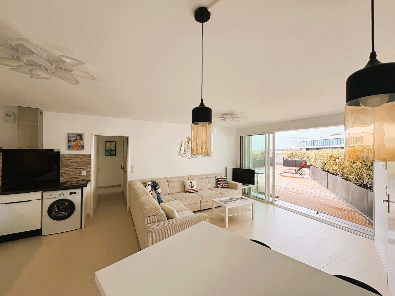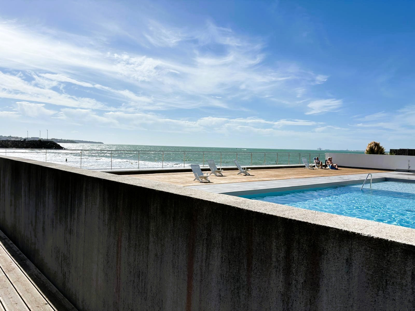 L'agence CHARTREUX IMMOBILIER vous propose dans une résidence de Standing avec PISCINE surplombant la plage de Foncillon, un APPARTEMENT de 2 pièces principales haut de gamme bénéficiant d'une pièce de vie de 33,10 m2, comprenant entrée-séjour-cuisine équipée avec accès à une superbe TERRASSE en bois exotique avec VUE SUR MER, PLAGE et PISCINE, un dégagement avec placard, une chambre avec placard donnant accès à la terrasse, une salle d'eau et des WC séparés. Chauffage éléctrique.