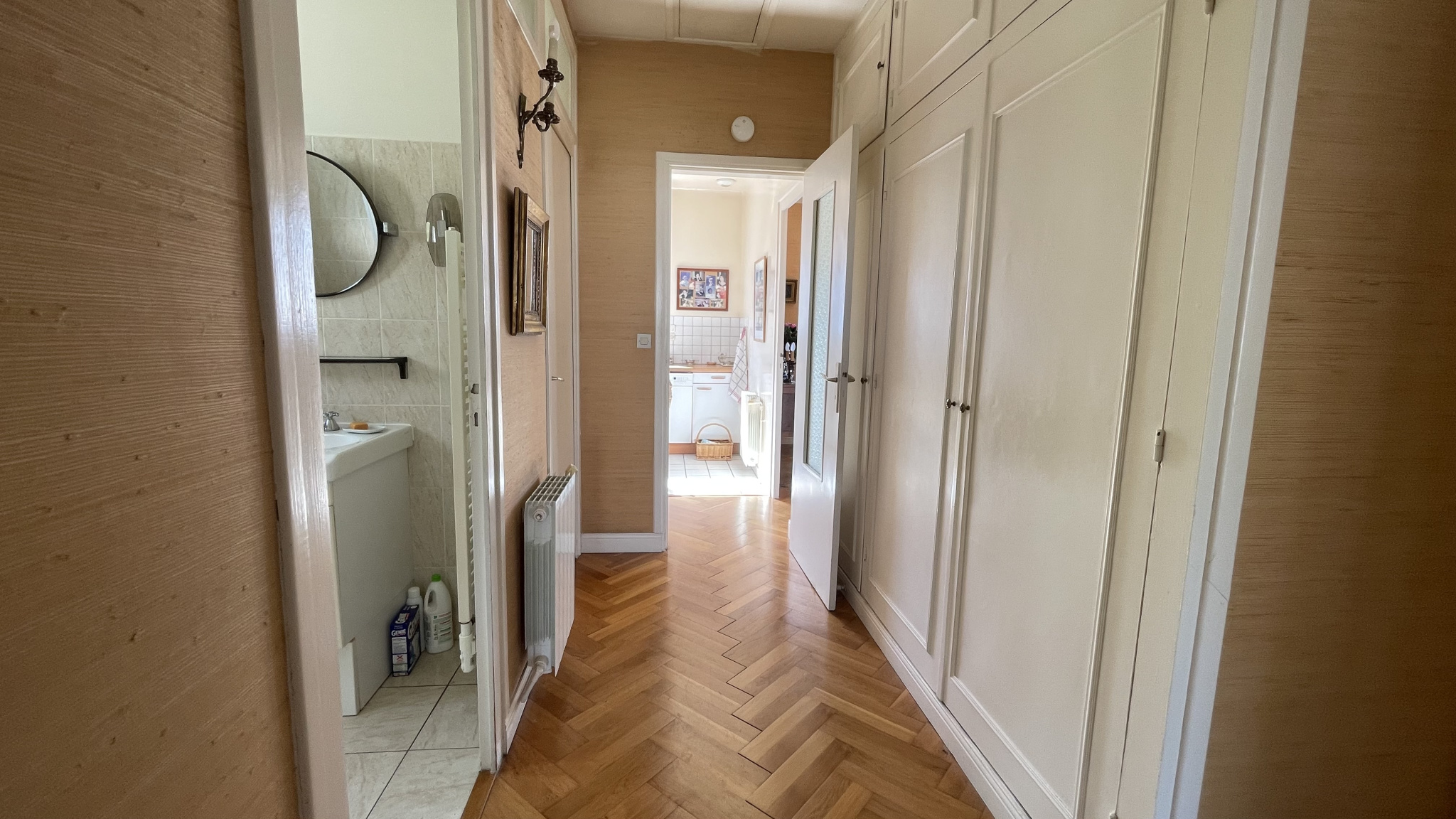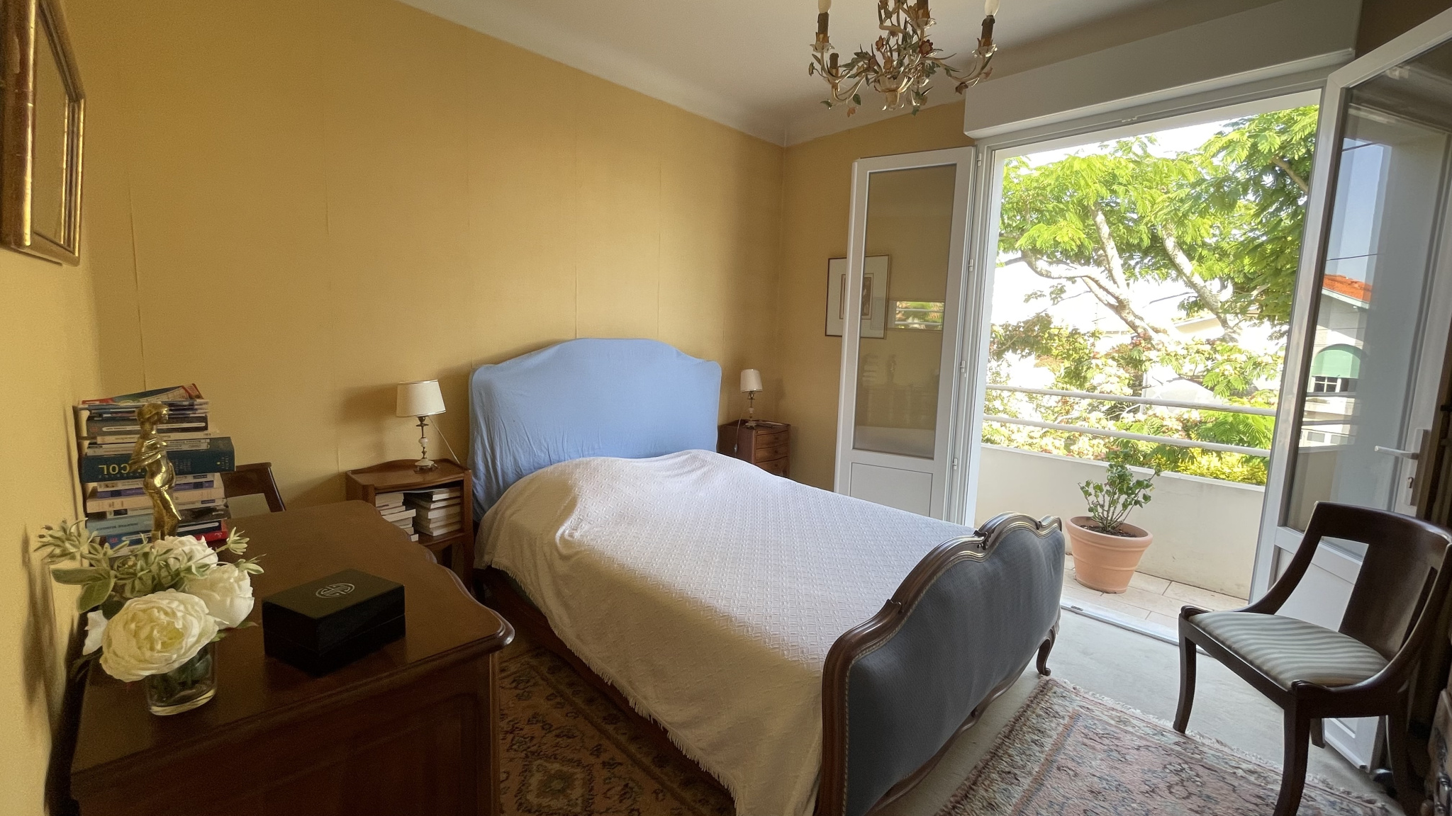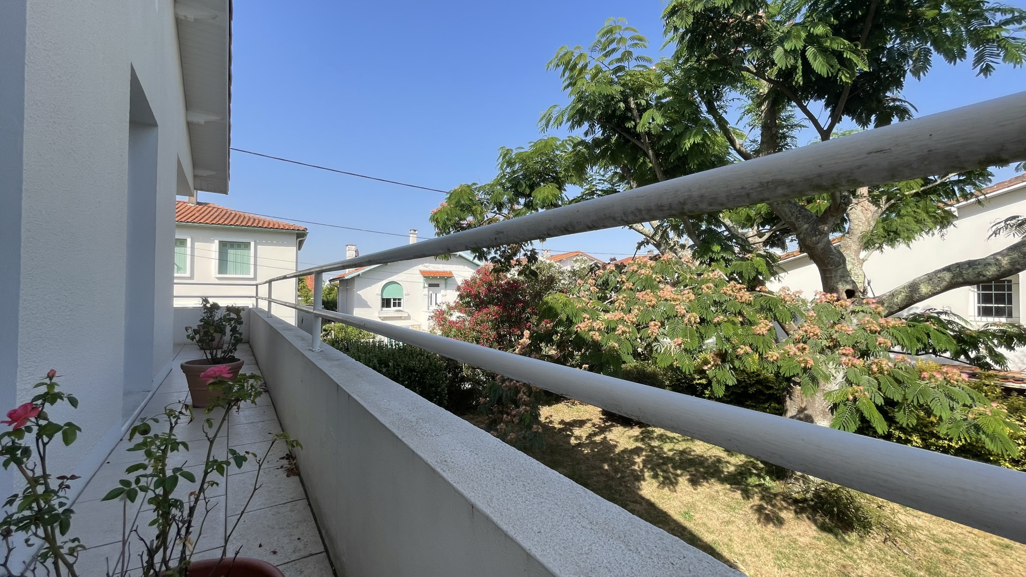 À l’étage, un appartement lumineux séduit par son agencement confortable. L’entrée ouvre sur un salon-séjour baigné de lumière, prolongé par un balcon filant de 13,5 m2, idéal pour profiter des beaux jours. La cuisine, aménagée et équipée (plaque, hotte, four, lave-vaisselle), peut être ouverte sur la pièce de vie pour créer un bel espace traversant. Deux chambres ouvrant également sur le balcon, un dégagement avec placard, une salle d’eau rénovée et des WC séparés complètent ce niveau.