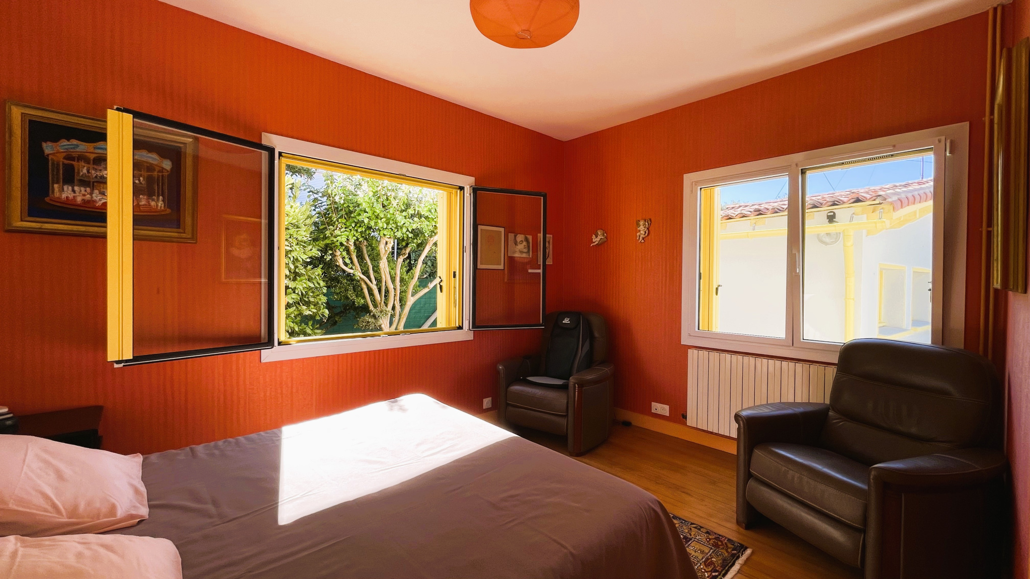L’Agence Chartreux Immobilier vous présente à ROYAN (17200), à 900 mètres des Plages de Pontaillac, du Chay et du Pigeonnier ainsi que du Marché Central, une Villa de Plain-Pied avec dépendances développant environ 155m2 de surface habitable. Ayant fait l’objet d’une rénovation intégrale par un Architecte d’Intérieur de la place Royannais, cette villa allie le charme des années 60 au confort moderne des années 2020. Elle comprend une entrée, une cuisine aménagée et équipée avec passe-plat sur pièce de vie et ouvrant sur véranda / verrière, pièce de vie avec cheminée d’ornement (tubage nécessaire avant remise en fonction) ouvrant sur une grande terrasse en bois, 3 chambres dont une avec dressing et salle d’eau / WC attenante, salle de bains, WC. En Annexes : un studio composé d’une pièce principale avec espace kitchenette ouvrant sur terrasse et d’une salle d’eau WC (cumulus), un deuxième studio composé d’une pièce principale, d’une kitchenette et d’une salle d’eau avec WC, une chambre indépendante avec salle d’eau et WC. Côté Stationnement la maison dispose d’un GARAGE et de deux places de parking. Le chauffage et la production d’eau chaude sont assurés par un système hybride de pompe à chaleur / gaz. Spécialiste des biens de caractère sur la Bande Côtière du Pays Royannais, notre Équipe se tient à votre service pour toute information complémentaire et rendez-vous de visite à votre convenance.