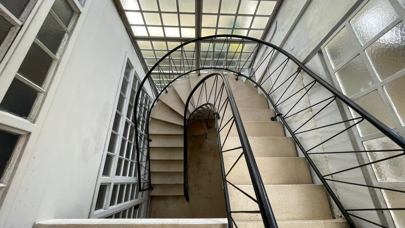 La transparence reste le maître mot de cet édifice grâce à sa cage d'escalier, véritable puit de lumière dont ses trois faces ont adopté le pavé de verre et dessert :