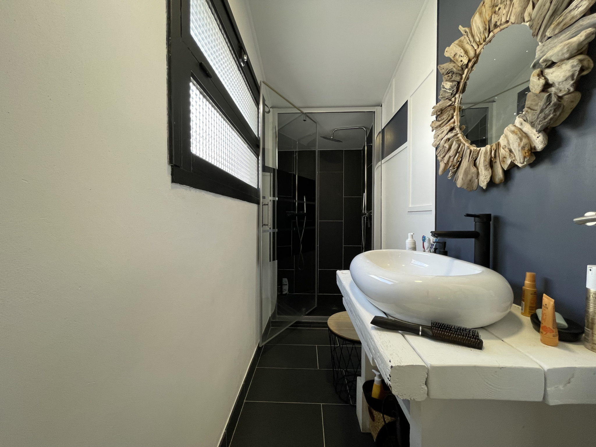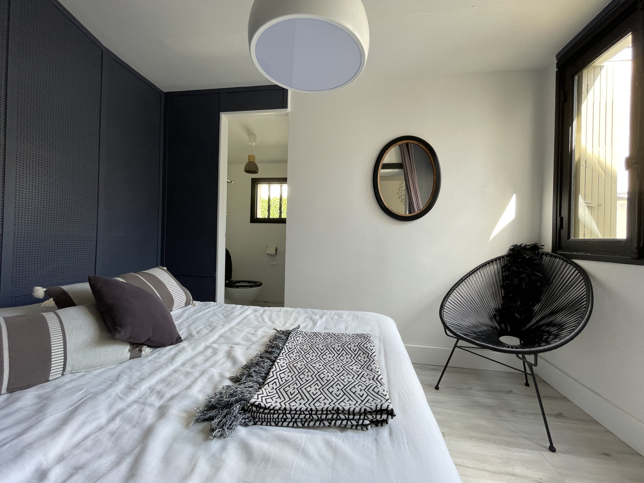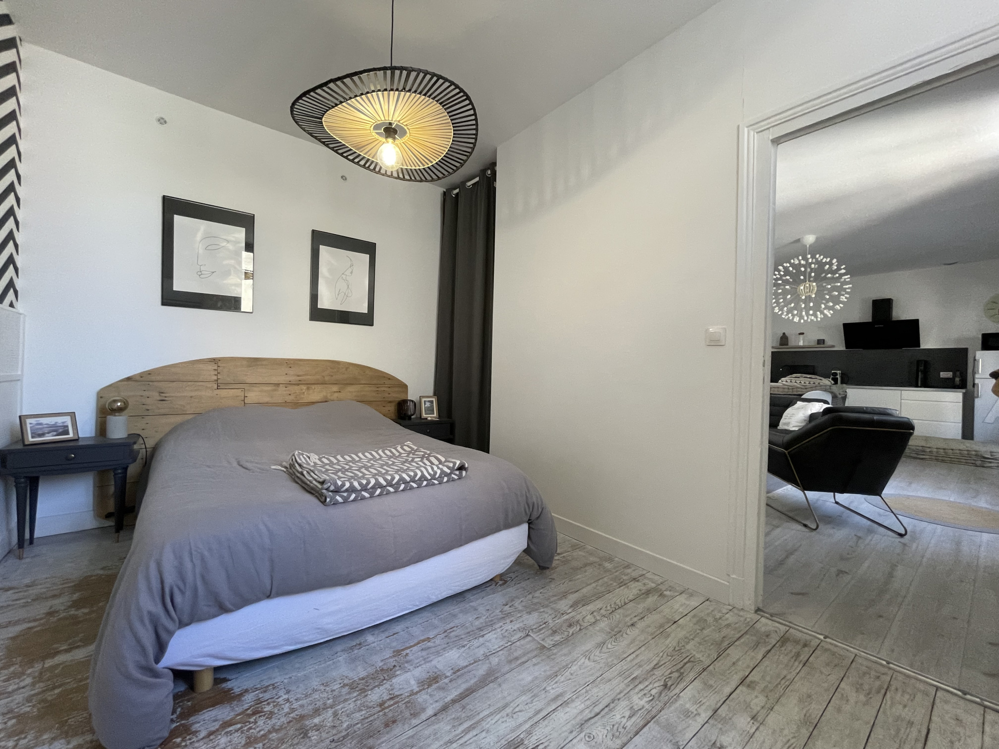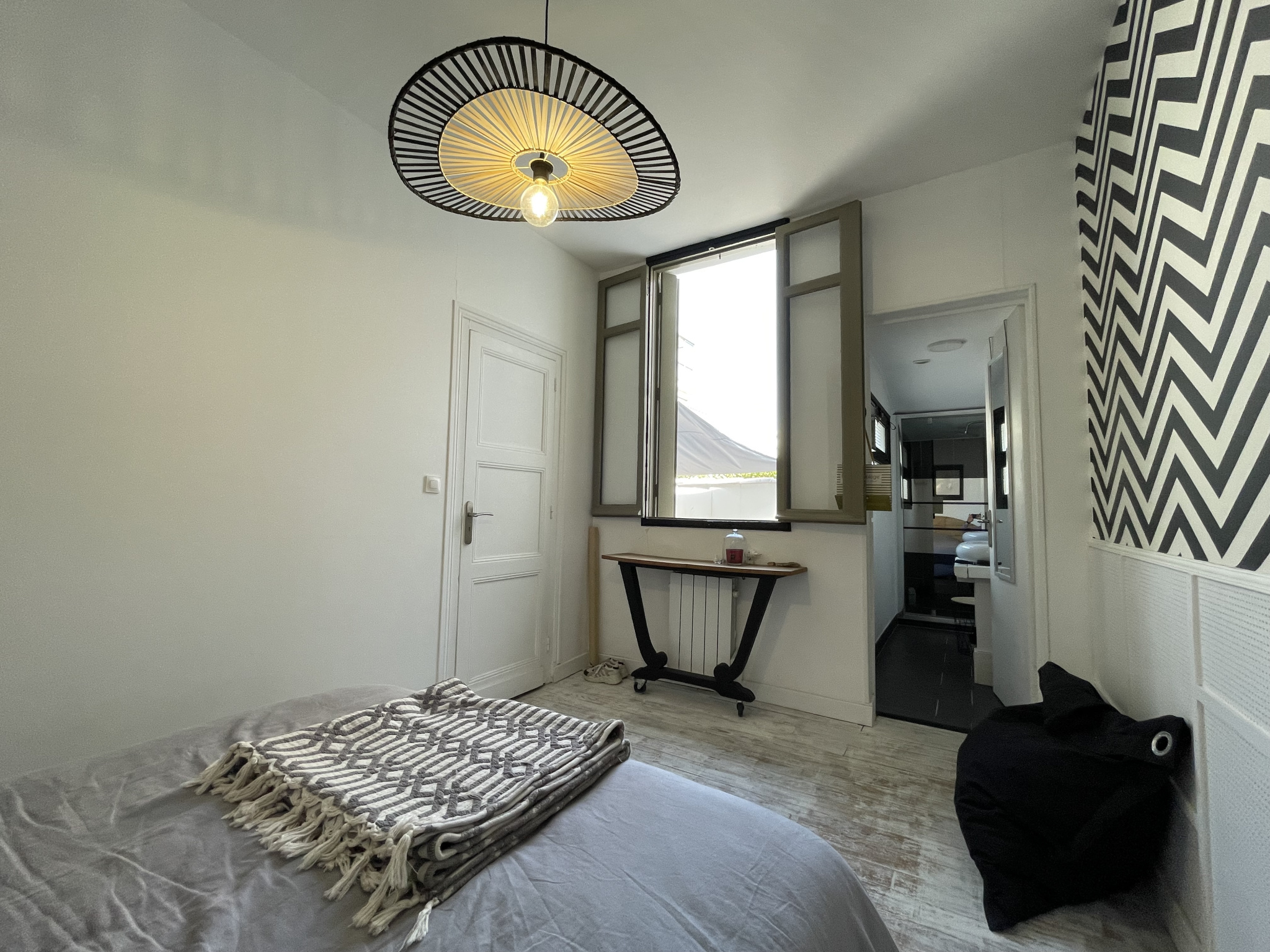 Cette maison de plain-pied d'une superficie de 49.697 m2 LOI CARREZ comprend, salon lumineux avec cuisine ouverte équipée (plaque de cuisson induction, hotte, réfrigérateur) ouvrant sur une belle terrasse de 17.32m2, chambre avec WC séparés ouvrant , WC séparés, chambre parentale avec salle d'eau. Une cave au sous-sol disposant d'une entrée indépendante à l'extérieur complète cette belle opportunité en plein coeur de VILLE.