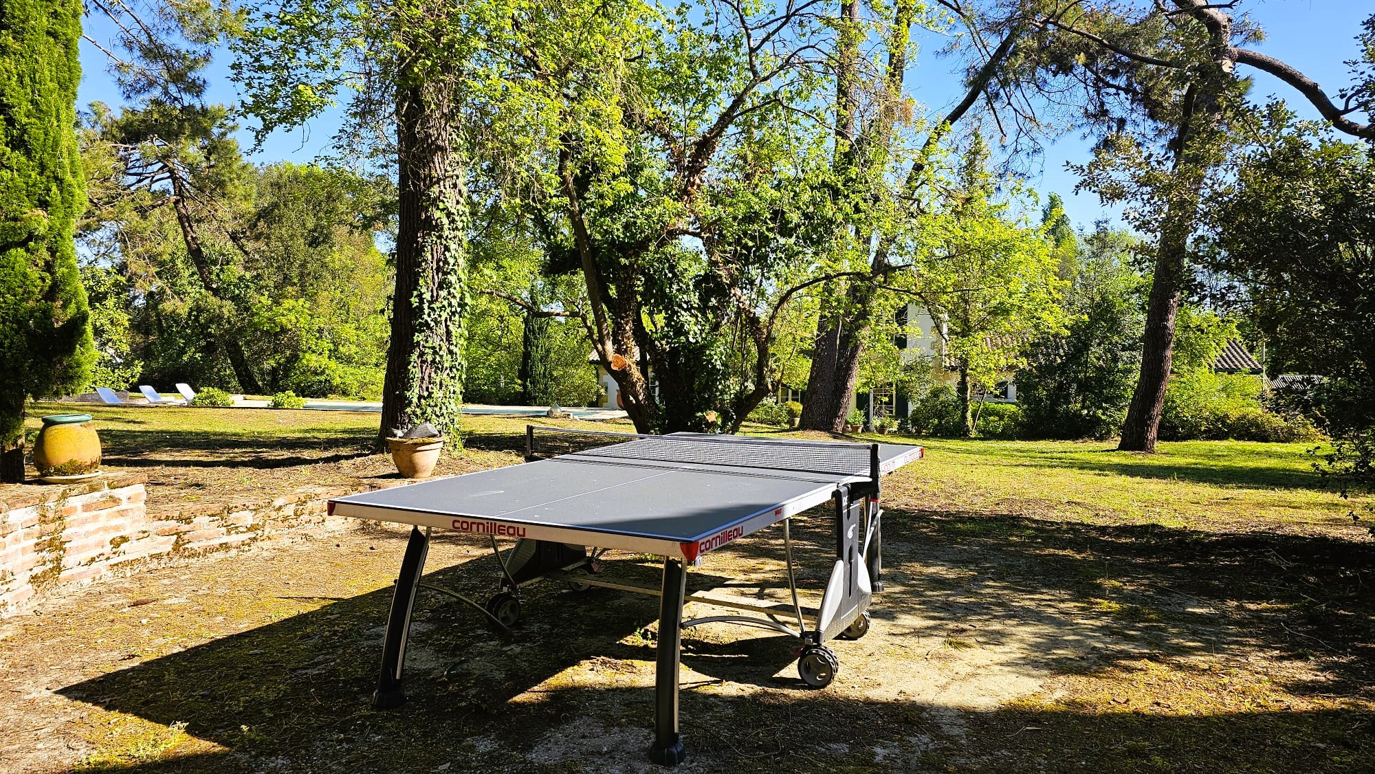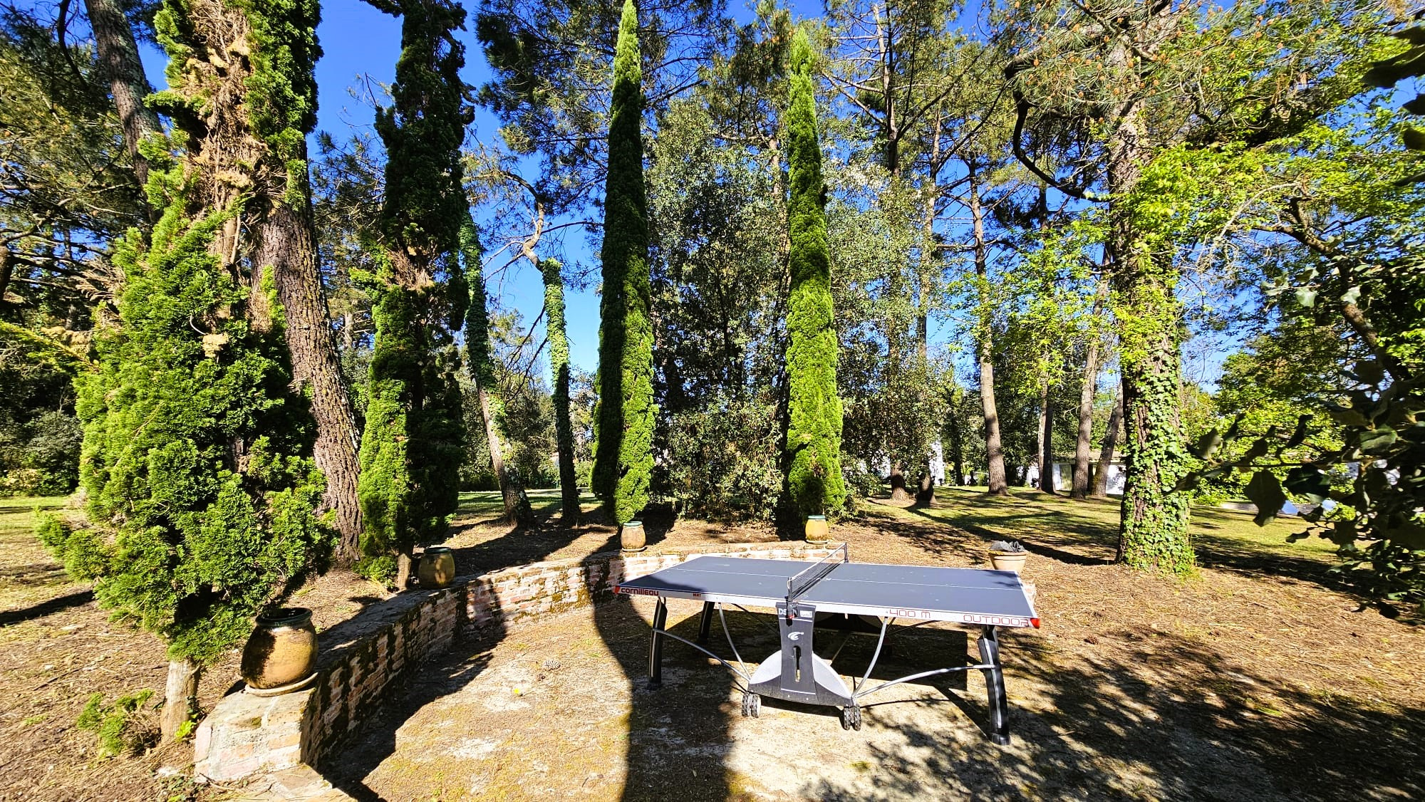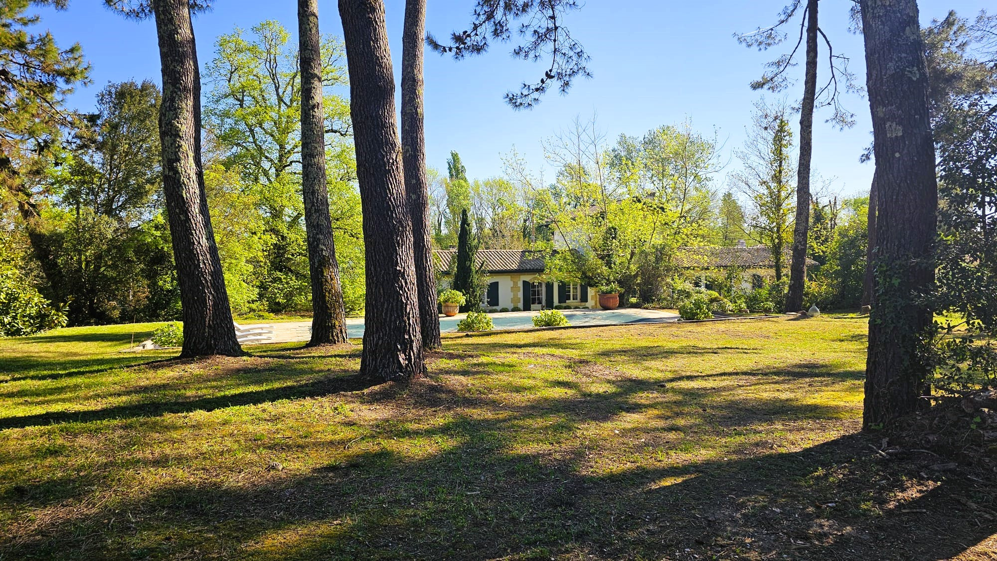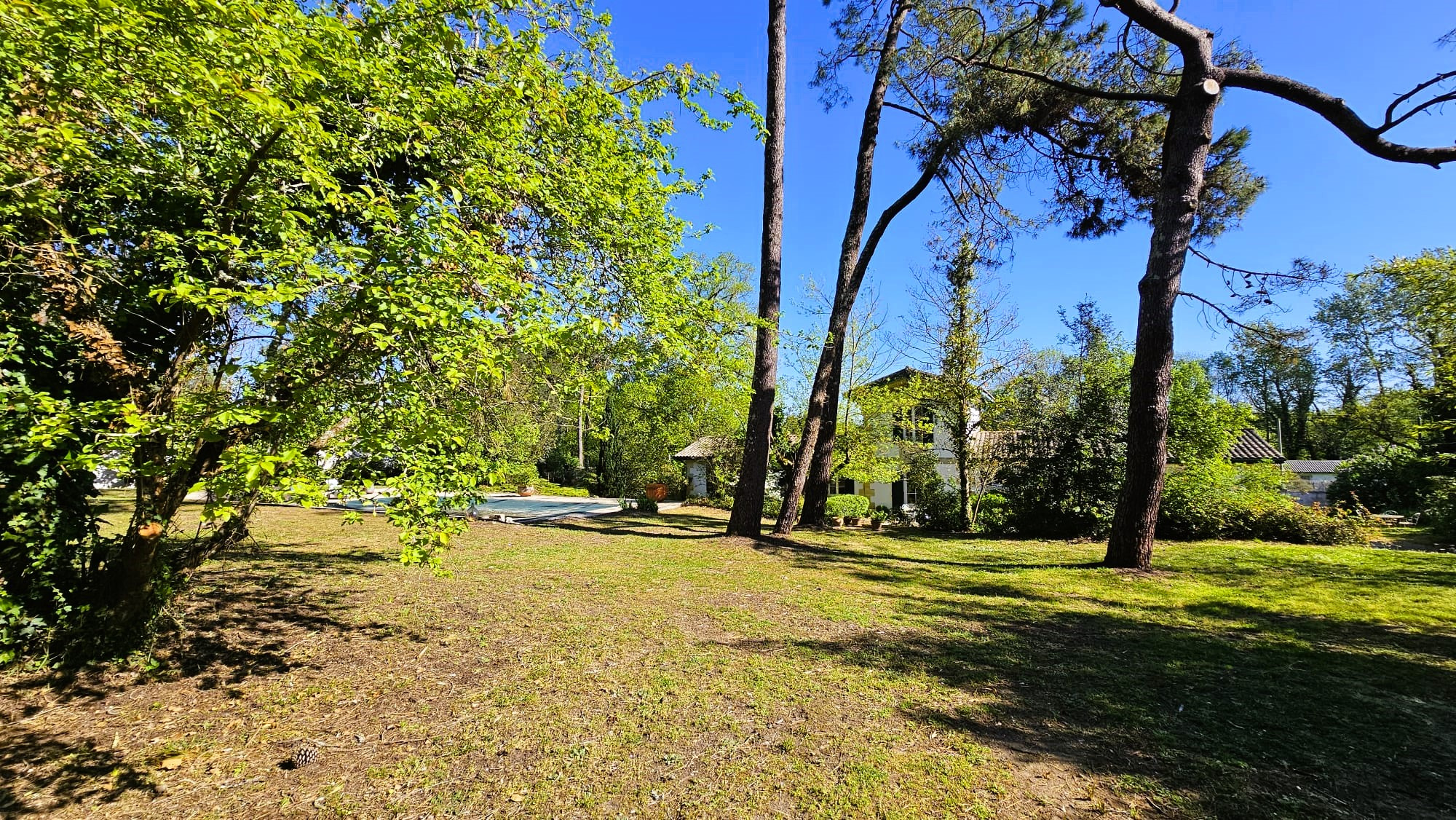 La propriété dispose d’un parc arboré, d’une grande piscine de 12m6m avec plages pavées pour espaces bronzage et repas et d’un abri de jardin de 20m2 pour l’outillage.