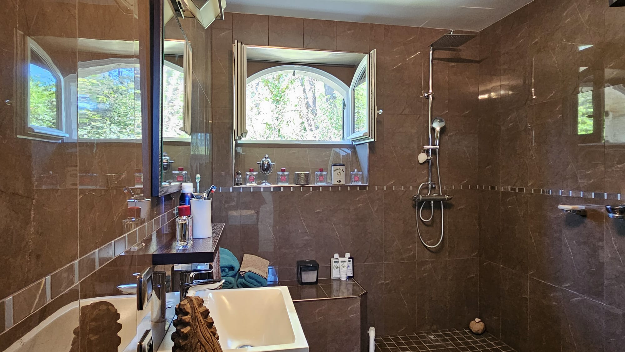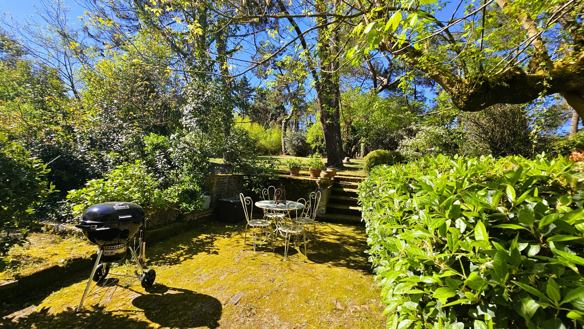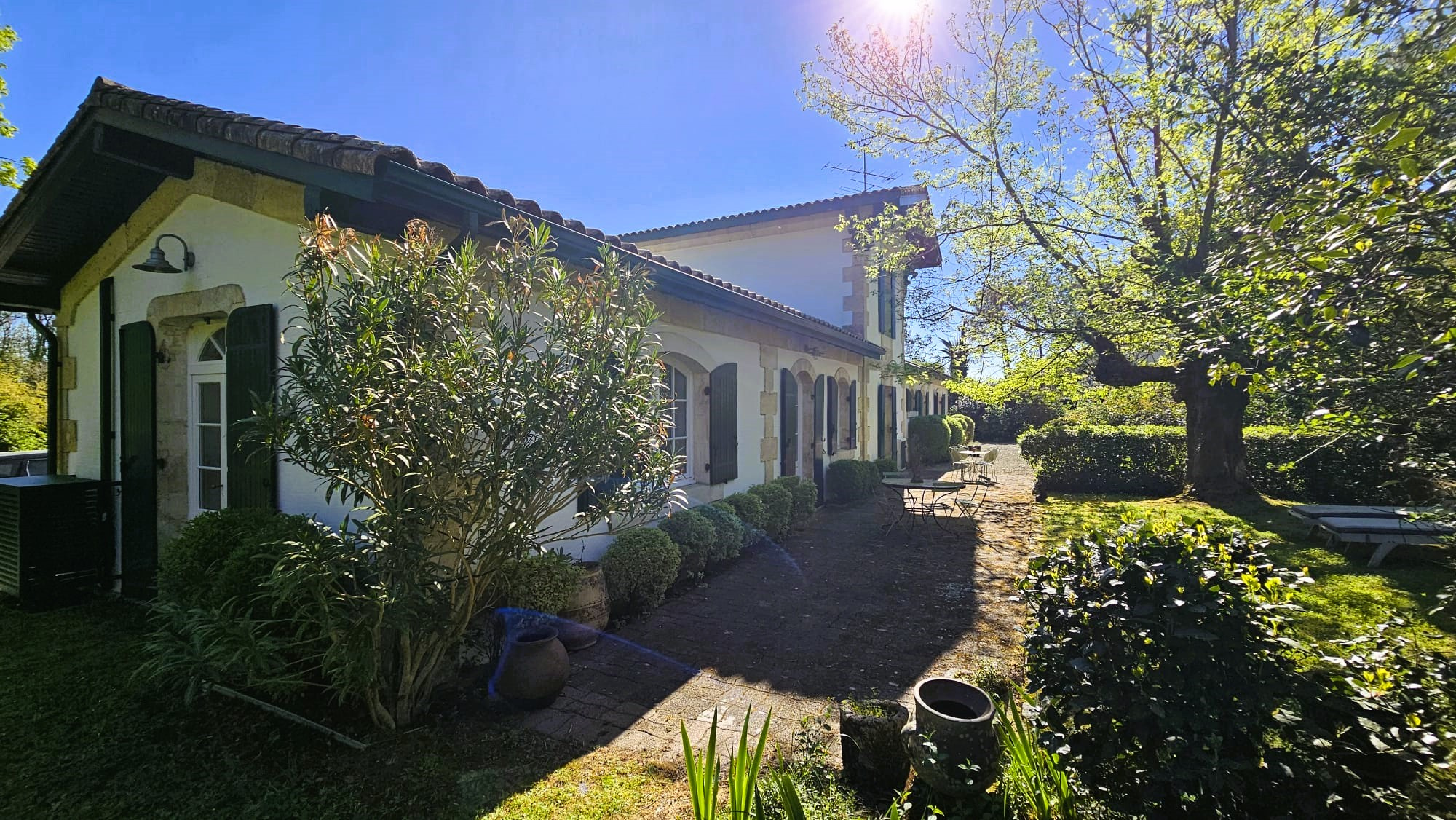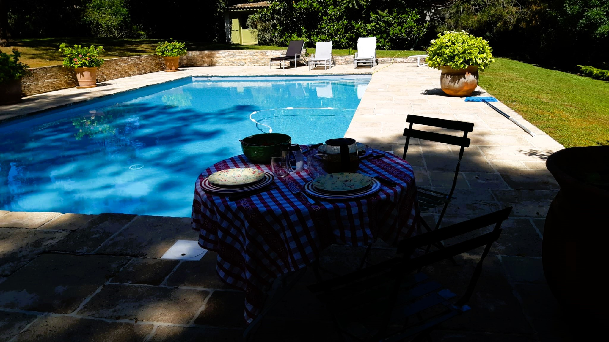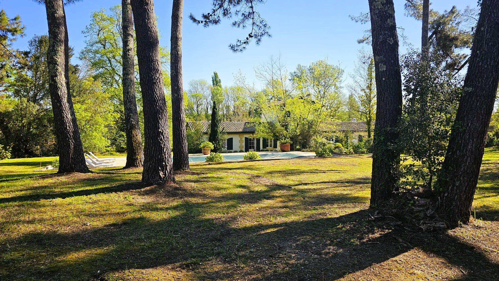 La propriété dispose d’un parc arboré, d’une grande piscine de 12m6m avec plages pavées pour espaces bronzage et repas et d’un abri de jardin de 20m2 pour l’outillage.