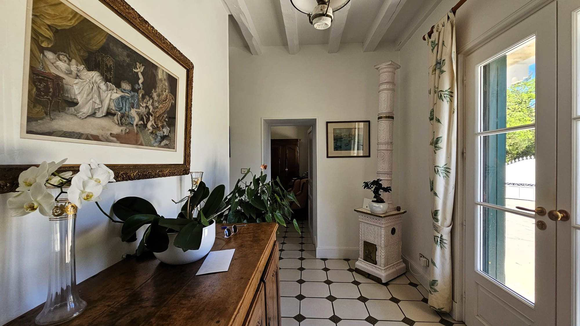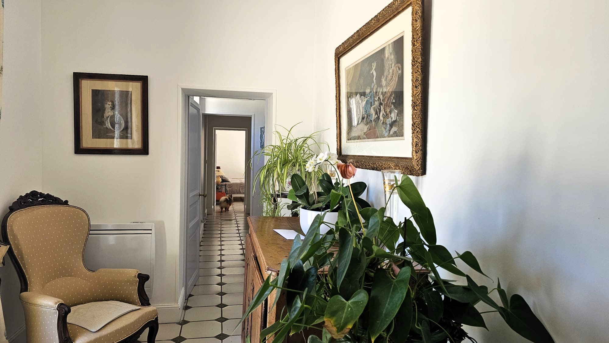 A l’étage le palier dessert une chambre ouvrant sur un balcon et son bureau (possibilité chambre d’enfants).