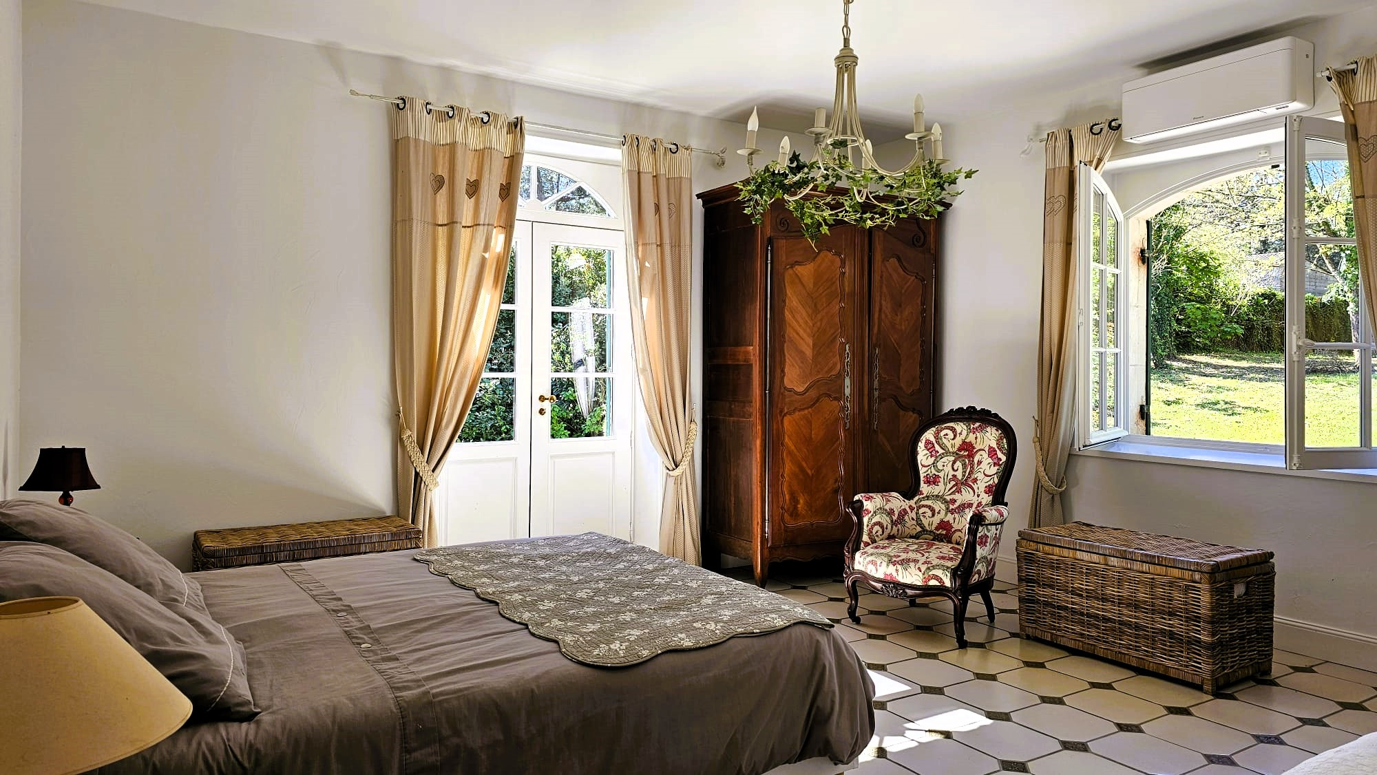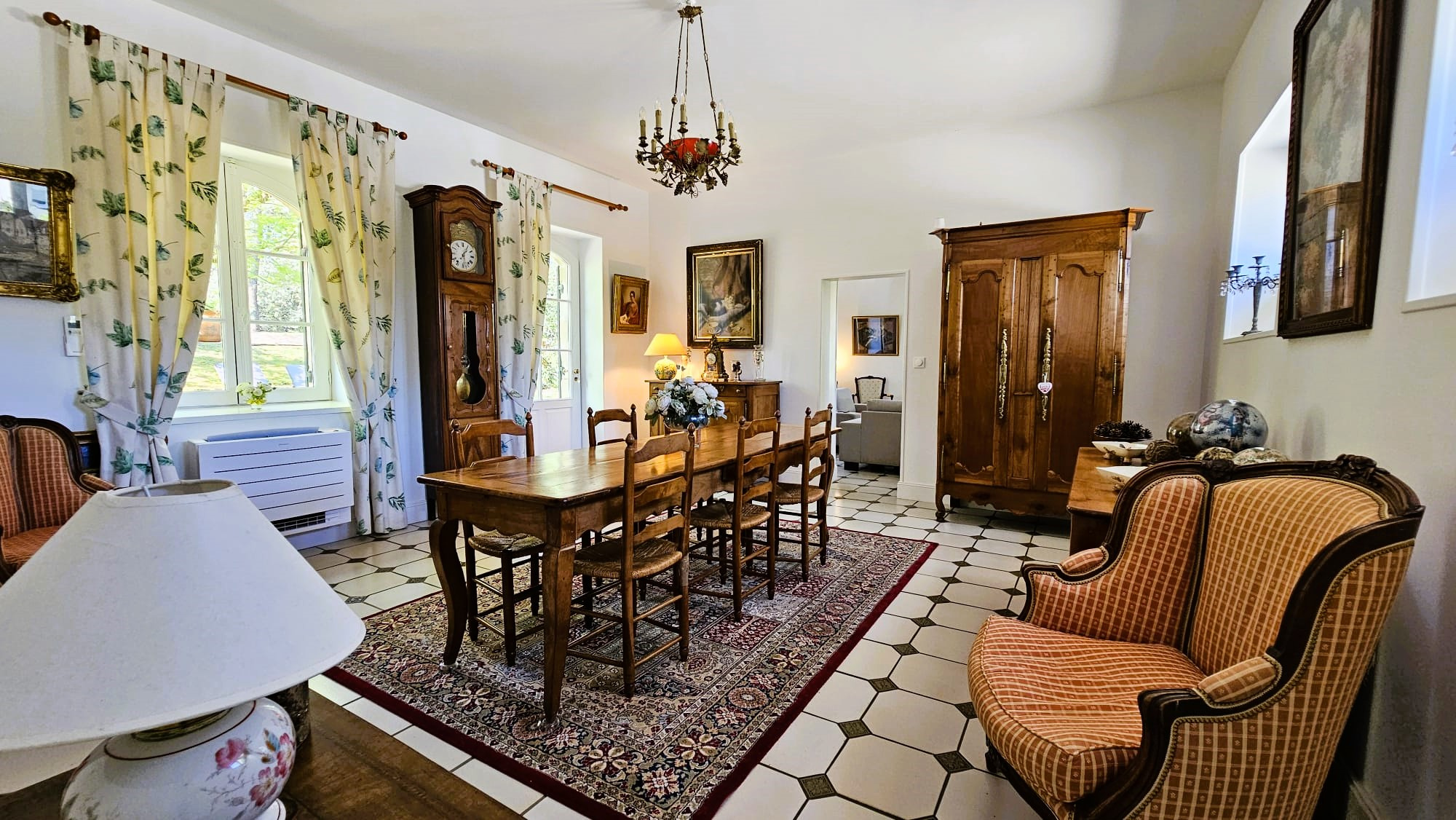 Cette demeure de caractère offre une vie de plain-pied. Le rez-de-chaussée comprend un hall d’entrée, une salle à manger ouvrant sur terrasse, un salon avec cheminée insert, une cuisine équipée ouvrant sur terrasse, trois chambres ouvrant sur le jardin dont une avec sa salle d’eau privative, une salle d’eau avec douche à l’italienne, des WC séparés et un cellier.