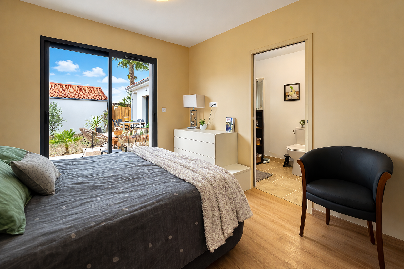 L'agence CHARTREUX IMMOBILIER vous présente, dans un quartier calme situé à environ 950 mètres des commerces et 1,5 km de la plage du BUREAU et du CENTRE-VILLE, une MAISON RECENTE de 2025 sous garantie décennale et bénéficiant de la conformité de construction de 4 pièces principales pour une surface habitable de 116,20 m2, édifiée sur un terrain clos de 304 m2 et comprenant : Entrée, WC séparés, séjour traversant lumineux de 52,79 M2 bénéficiant d'une ouverture sur 2 terrasses exposéées nord/est et sud/ouest avec cuisine à l'américaine équipée ouvrant sur terrasse et patio, cellier attenant à la cuisine, dégagement avec placard, première chambre avec placard, salle d'eau aavec douche à l'italienne, seconde chambre avec placard, suite parentale ouvrant sur terrasse avec coin dressing, salle d'eau et WC. Chauffage au sol par pompe à chaleur ATLANTIC air/eau. Un GARAGE carrelé et isolé de 20,13 m2 avec porte sectionnelle isolée motorisée.