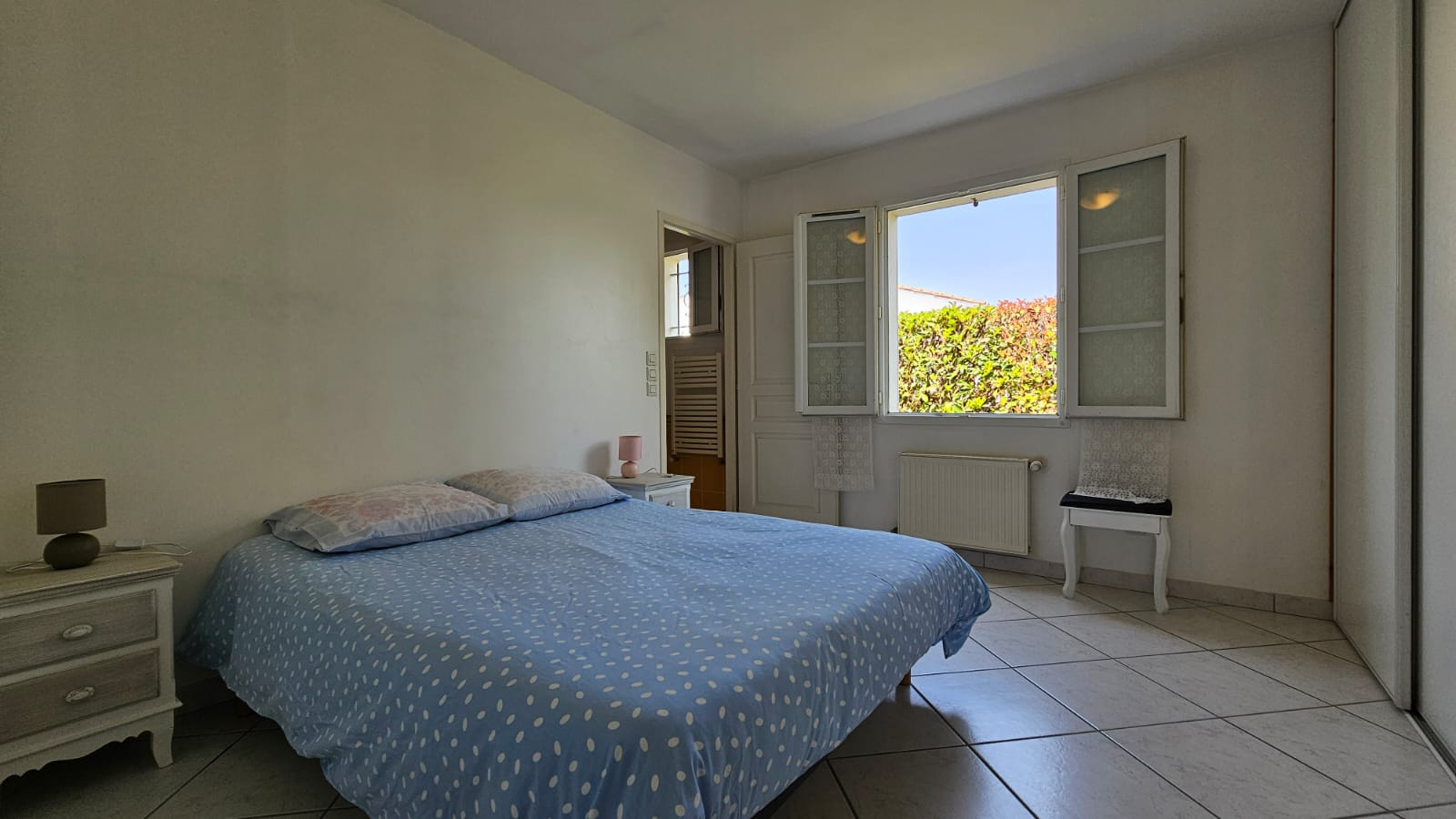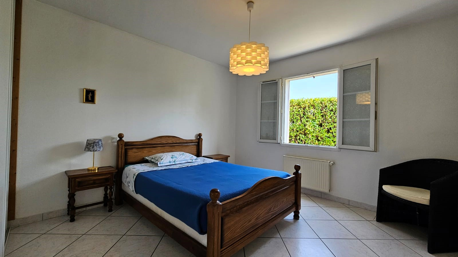 Un entrée sur pièce de vie triple exposition avec cuisine ouverte ouvrant sur auvent, dégagement, 4 chambres avec placard dont une avec salle d'eau, salle de bains et 2 WC. Chauffage au gaz de ville.