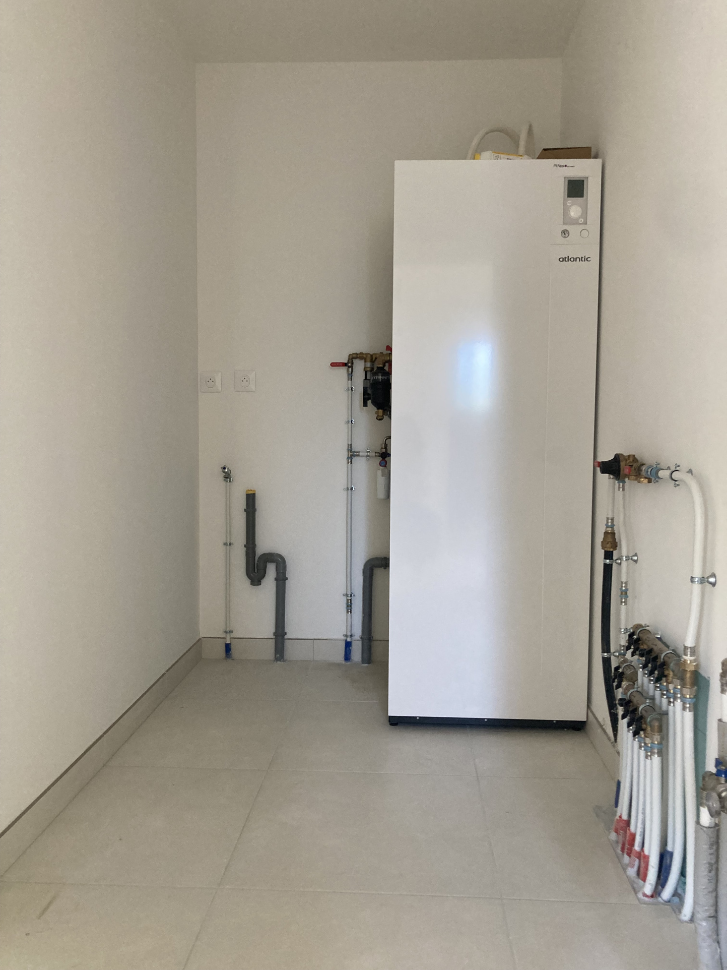 Accès par portail électrique, avec possibilité de stationnement extérieur. Chauffage au sol par pompe à chaleur.