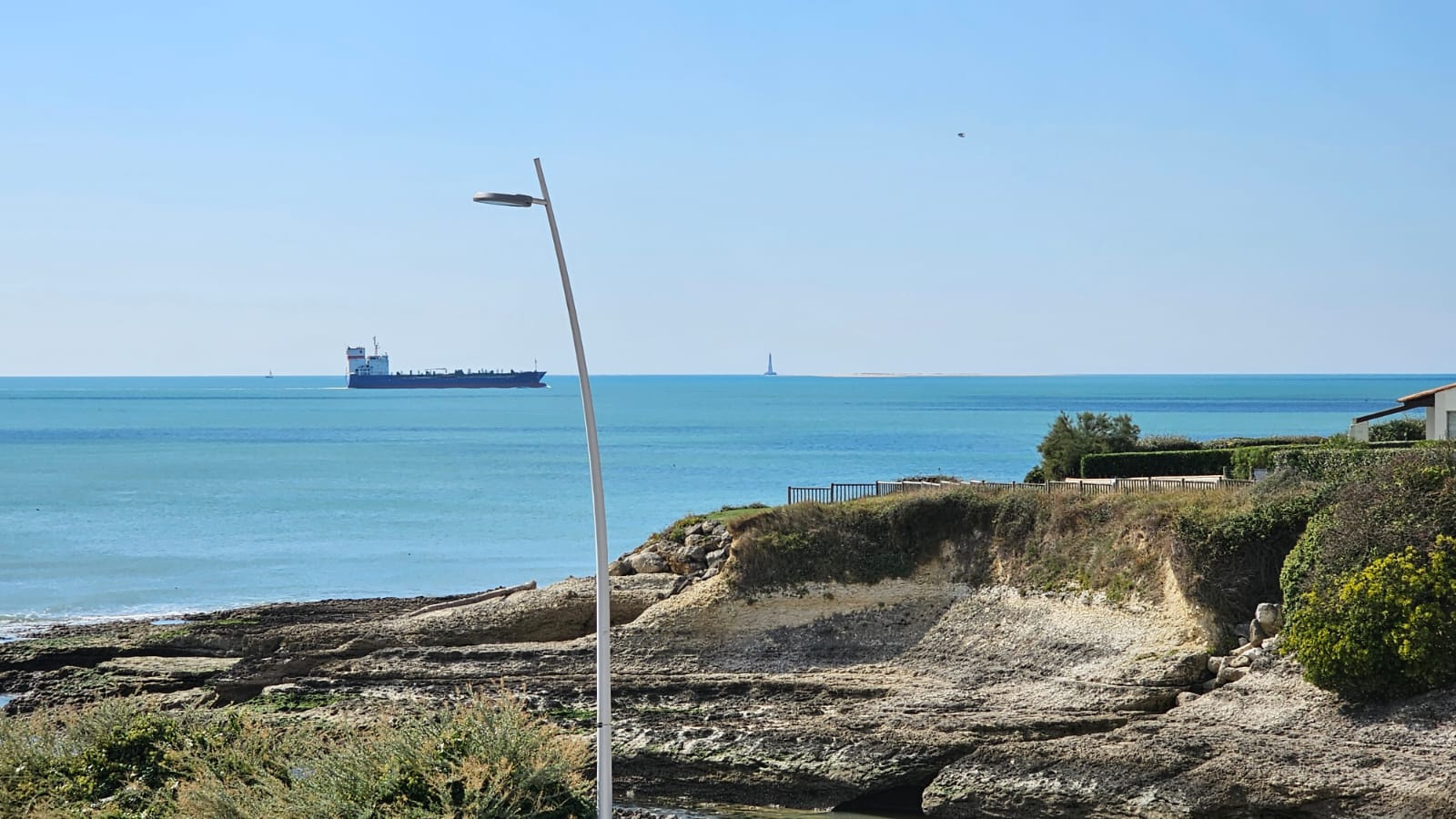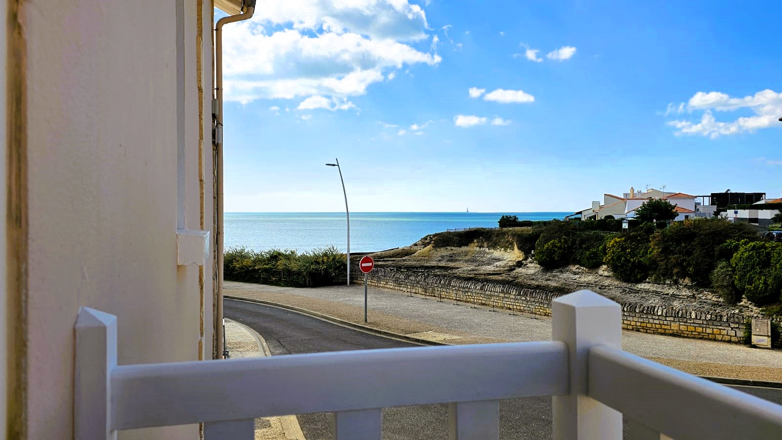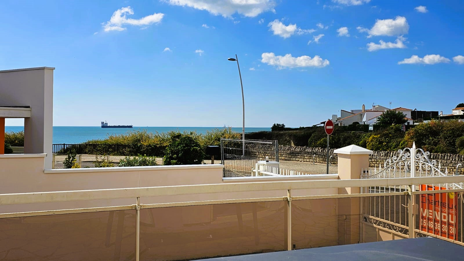 A l'étage : Palier, chambre ouvrant sur balcon VUE MER, chambre avec placard, salle d'eau avec WC donnant sur balcon avec magnifiqueVUE SUR MER.