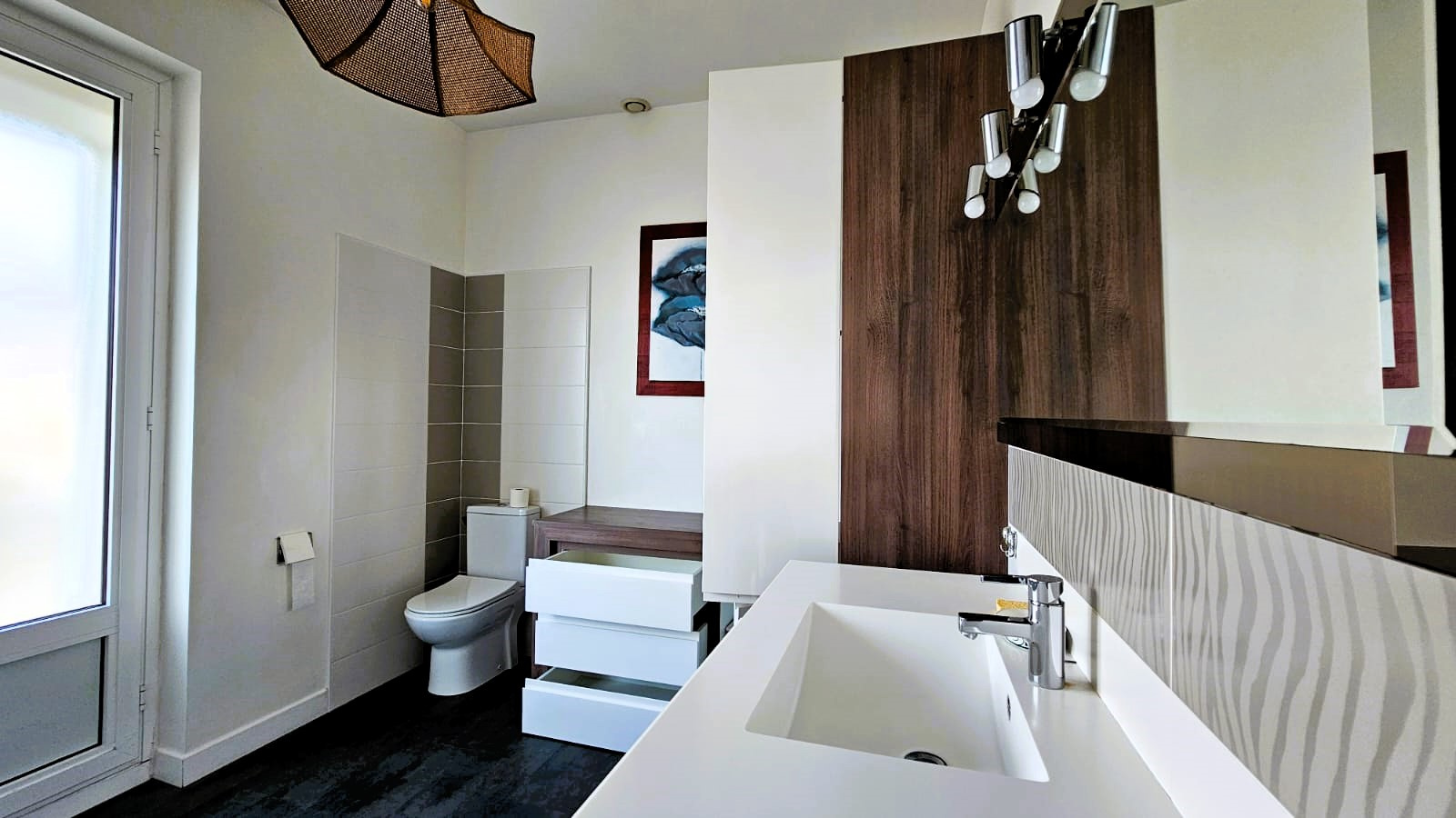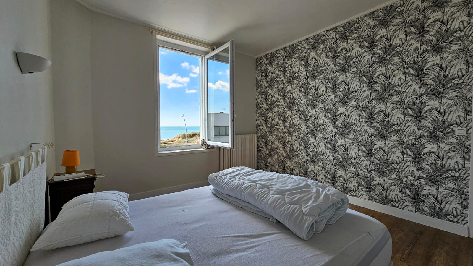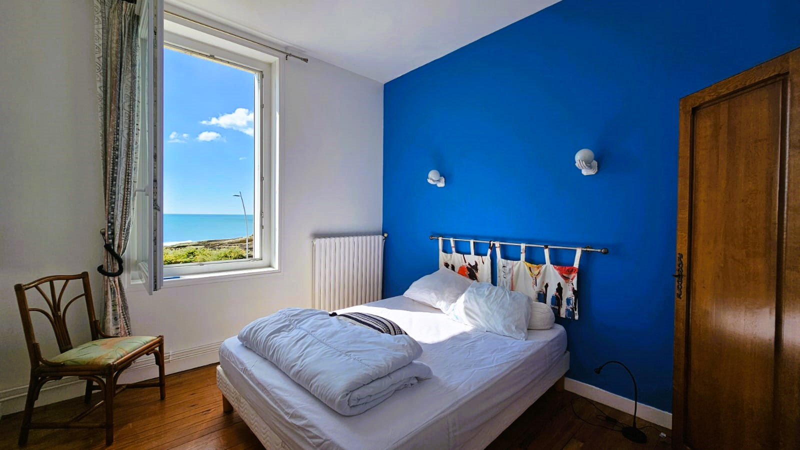 En 1/2 niveau : Palier avec placard, 2 chambres FACE MER dont une avec placard.